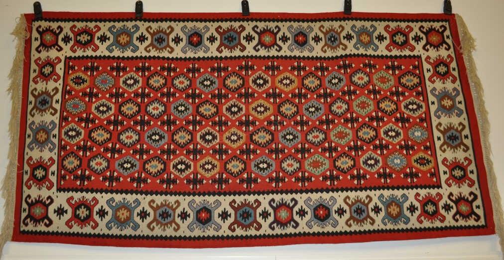 Vintage Sarkoy Kilim Rug, Textile, Symbolizing Fertility, Devotion, Protection, Handwoven, Bride, Groom, Wedding Present, Newlywed Gift